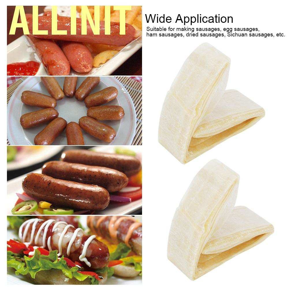 Feature: 1. Double‑layer dry sausage casing, uses high‑quality materials, safe and non‑toxic, and can be eaten safely. 2. Before use, please soak the dry casings, the diameter (thickness) is 5 cm after filling. 3. Suitable for making sausages, Taiwanese sausages, egg sausages, ham sausages, dried sausages, Sichuan sausages, etc. 4. Good toughness, not easy to break when enema, clean and easy to store (the shelf life is 3 years under dry conditions). 5. Practical sausage making tools, easy to operate, suitable for home‑made sausages.