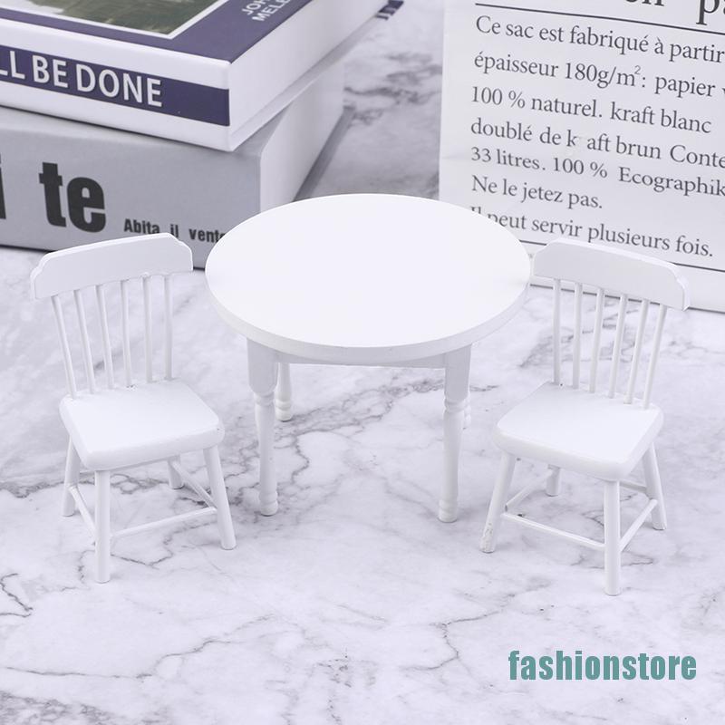 [ljc96592]3Pcs/Set 1/12 Doll House Mini Furniture Dining Table Chair Set Toy Model Decor