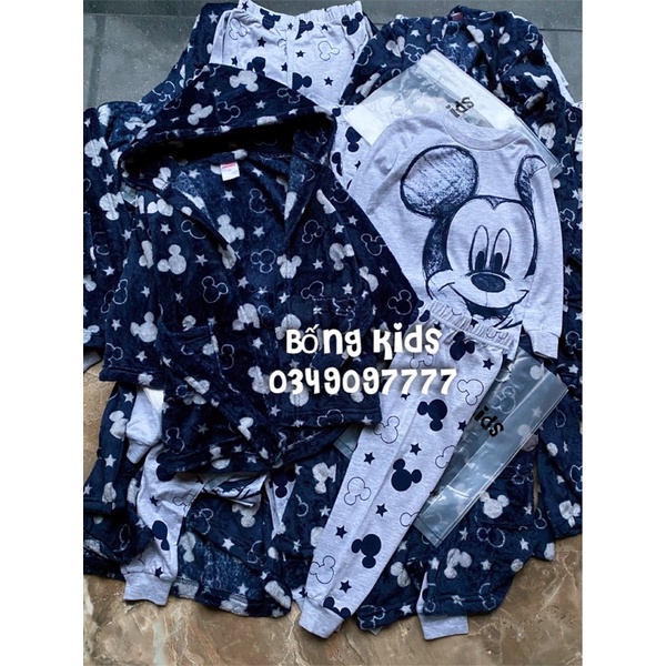 Set 3 Món Bé Trai Mickey Kèm Áo Choàng Ghi Navy DN