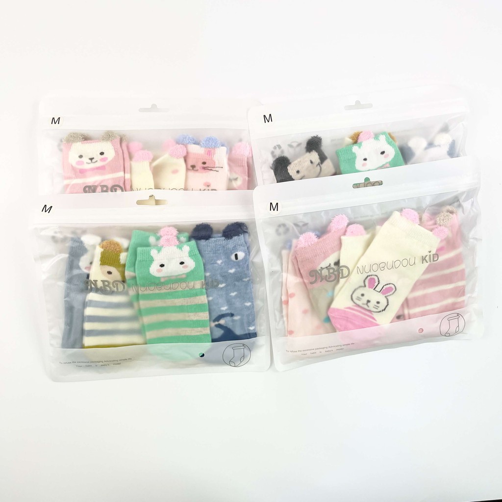 [SET 5 ĐÔI] Tất Trẻ Em Tai Gấu cho bé Trai/Gái, Tất cho bé có đệm silicon chống trượt dưới bàn chân, túi zip xịn xò: Loại tất thu đông dành cho trẻ với nhiều họa tiết cực kì dễ thương với chất liệu vải cotton dày dặn, mềm mại mang lại cảm giác dễ chịu cho bé, đặc biệt có thể giữ ấm cho các bé cực kì hiệu quả.
