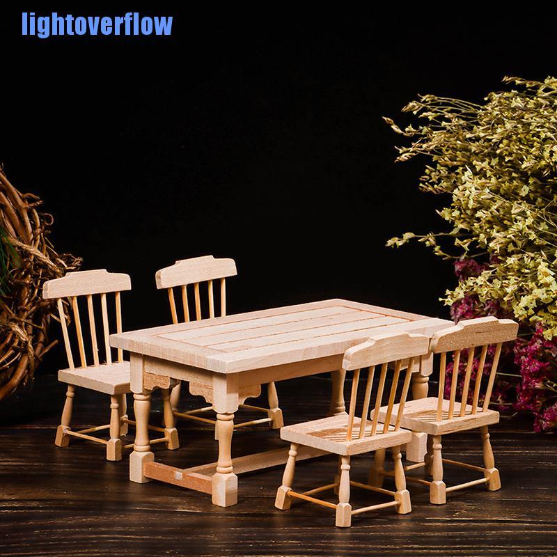 Giới thiệu Set 5 Mô Hình Bàn Ghế Gỗ Mini Tỉ Lệ 1 / 12 Trang Trí Nhà Búp Bê
