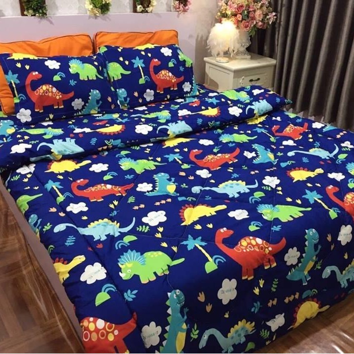 Giới thiệu Set 5 Món Chăn Phao Kèm Ga Gối Và Vỏ Gối Ôm Mẫu KHỦNG LONG XANH