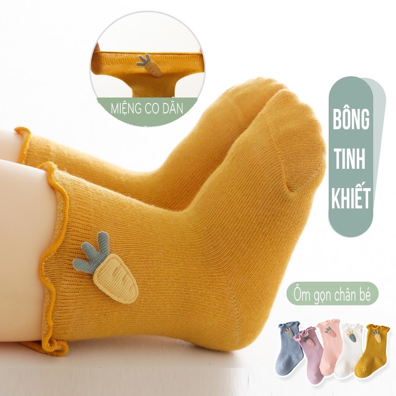 Thời trang trẻ em & trẻ sơ sinh > Phụ kiện trẻ em & trẻ sơ sinh > Tất || Set 5 tất trẻ em - Set tất vớ cao cổ hình Cà Rốt viền bèo chất cotton siêu mềm mịn không bai xù dễ thương cho bé TL01