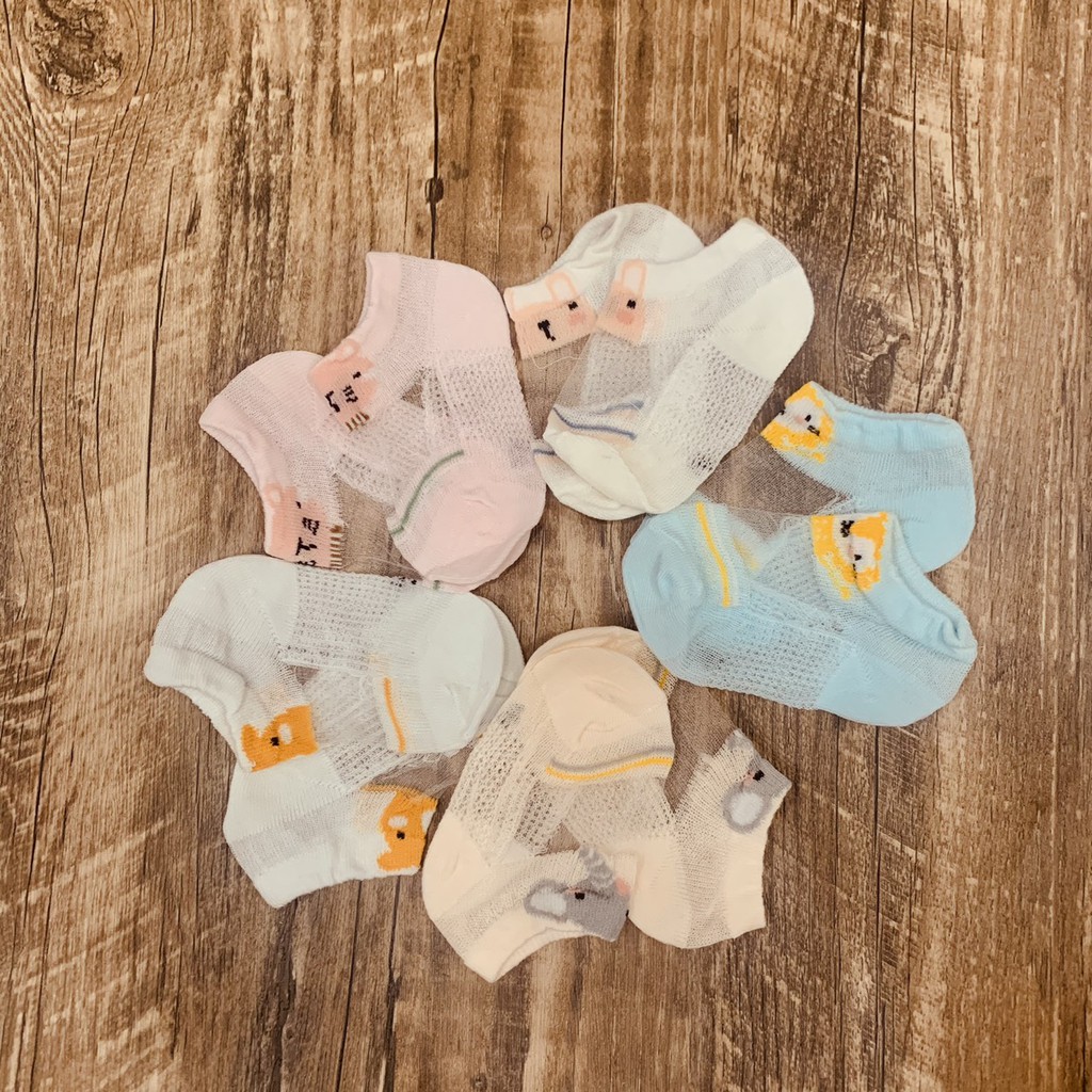 Vớ lưới cho bé mùa hè với 5 màu và họa tiết hình con vật xinh xắn.