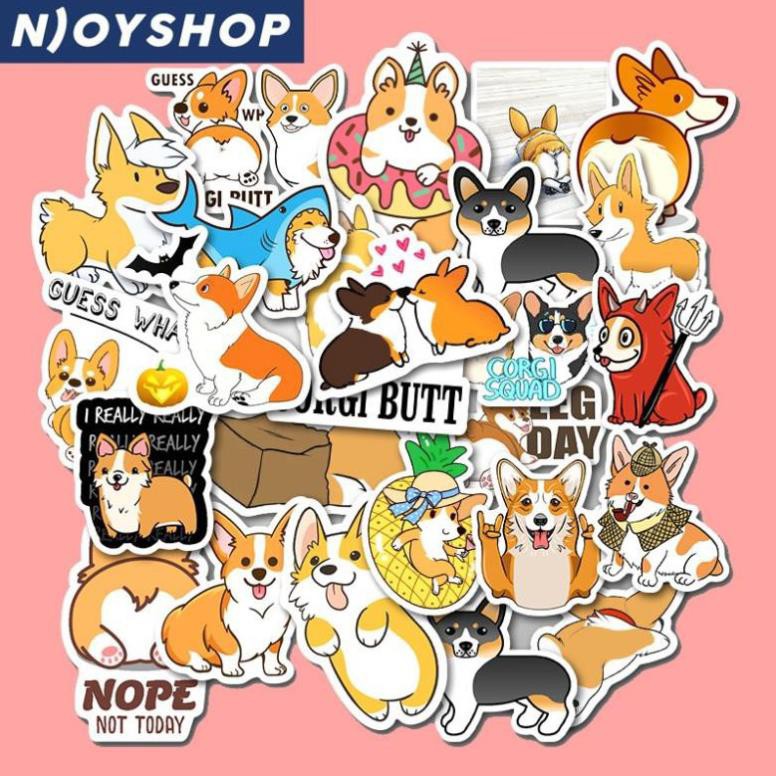 SET 50 MIẾNG STICKER CHÚ CHÓ CORGI DỄ THƯƠNG CHỐNG NƯỚC DÁN NÓN BẢO HIỂM, LAPTOP, VALI, TỦ, BÀN HỌC, XE MÁY