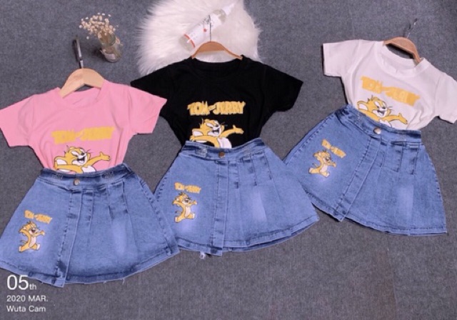 Set áo cộc tay hoạt hình - quần váy jean bò