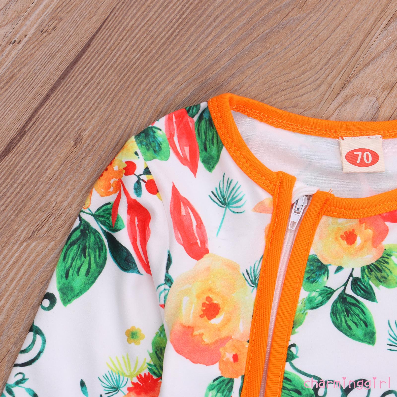 Newborn Baby Girl Fall Outfit, Cute Long Sleeve Floral Print Zip Footed Romper + Headband 2Pcs Clothes Set