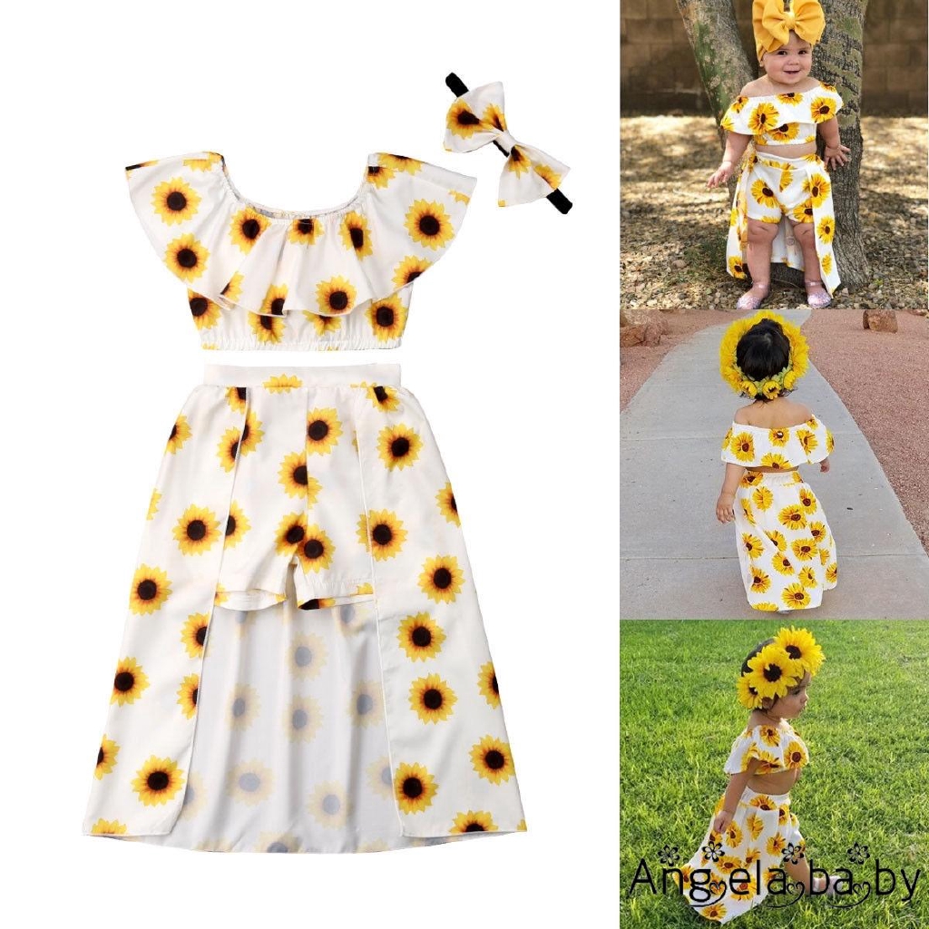 Set áo liền quần + Quần short + Băng đô nơ dễ thương cho bé gái
