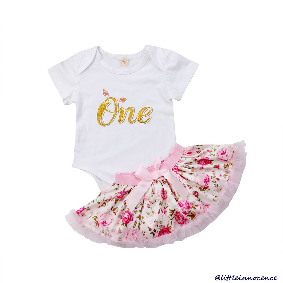 Giới thiệu Set áo liền quần tay ngắn và chân váy họa tiết hoa đáng yêu cho bé gái
