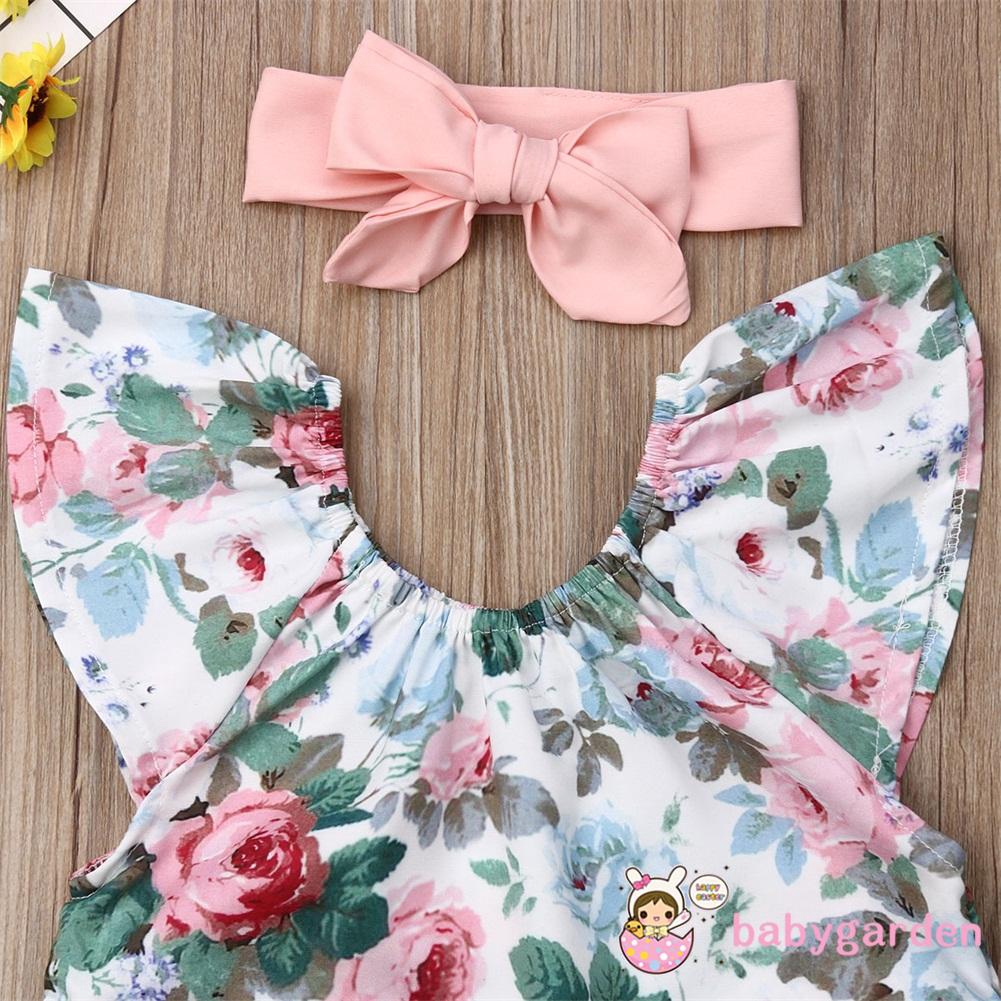 Giới thiệu Set Áo Sát Nách Họa Tiết Hoa + Quần Short + Băng Đô Cho Bé Gái