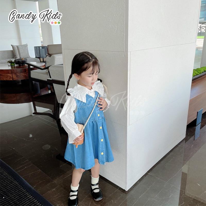 Giới thiệu Set Áo Sơ Mi Trắng Dài Tay Và chân váy jean Cho Bé Gái (2-9 Tuổi)