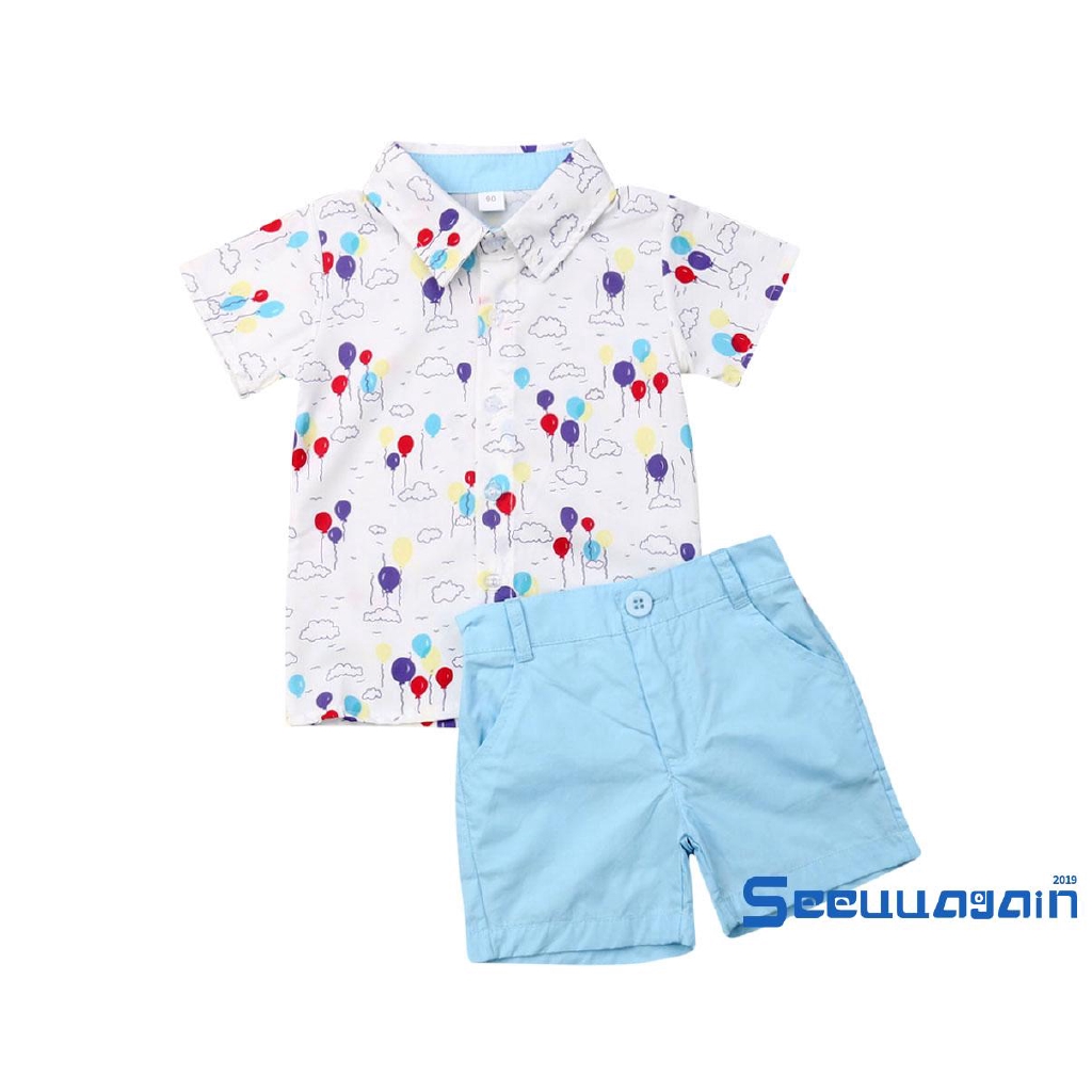 Set Áo Thun Ngắn Tay Cổ Tròn+Quần Short Thời Trang Cho Bé Trai