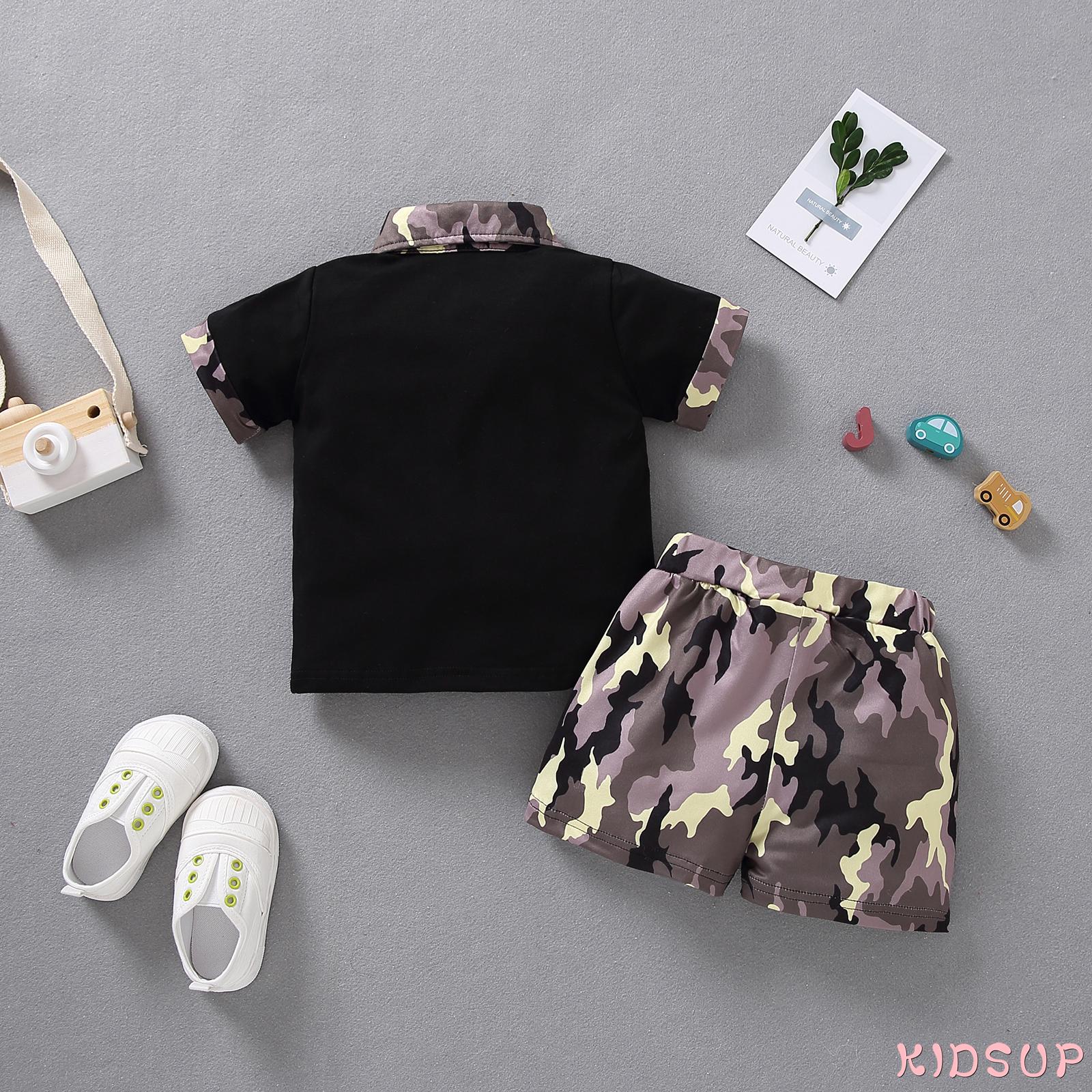 Specification Condition: 100% Brand New Material: Cotton Color: Black/White Pattern: Camouflage/Dinosaur Style: Casual Collar: Polo Collar Sleeve Length: Short Size: 80/90/10/110 Applicable Gender: Boys Applicable Age: 3-18 Months Applicable Occasion: Indoor & Outdoor