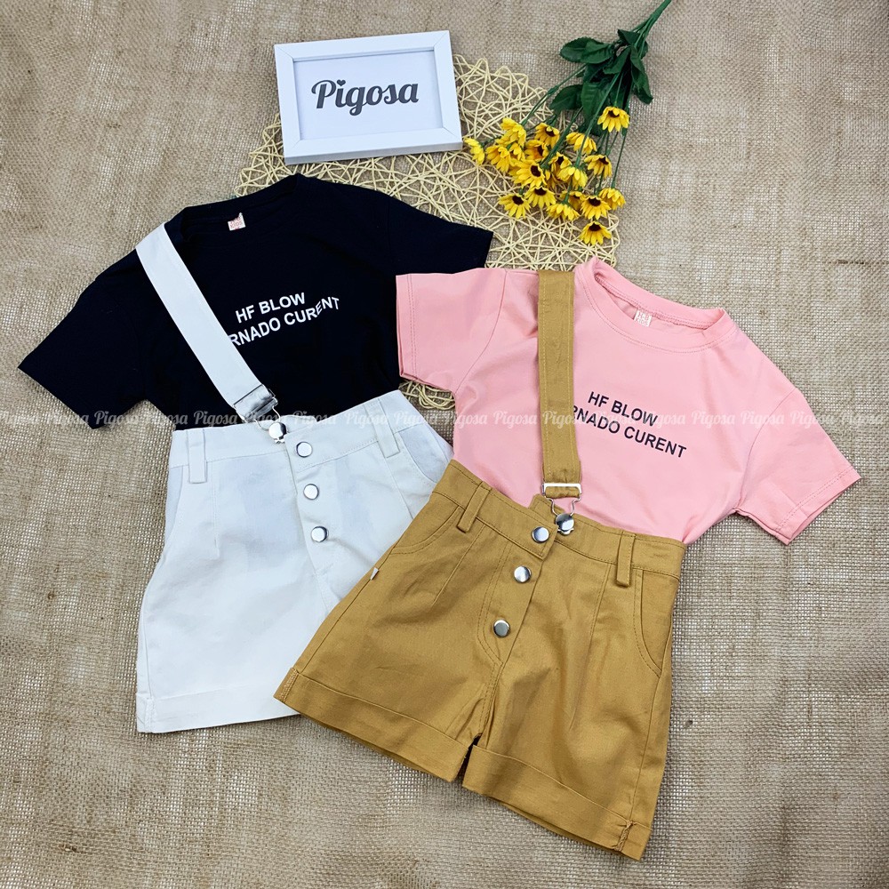 Giới thiệu [XẢ KHO] [Set Áo + Yếm] Đồ Bộ Bé Gái Yếm Kaki 1 Vai Kèm Áo Thun Cộc Tay - HAPY SB522
