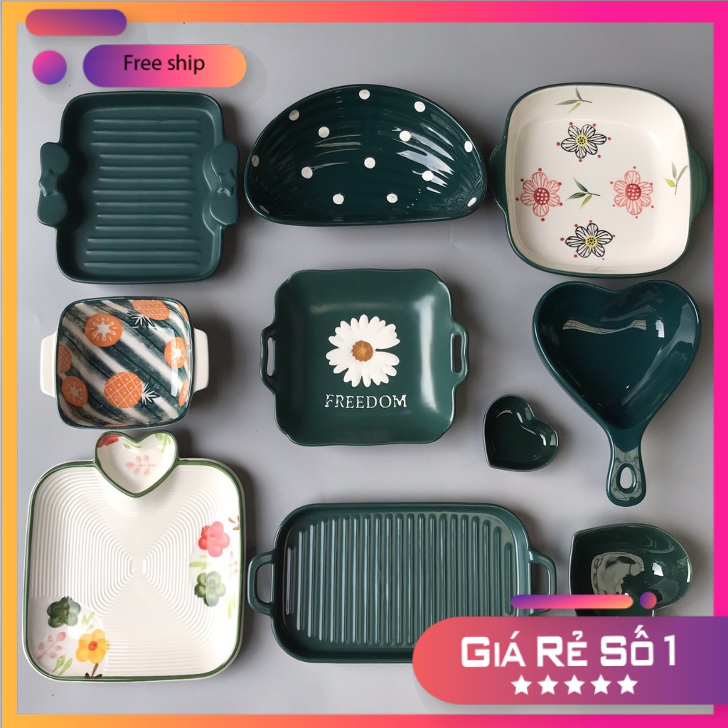 Tên Sp: Set Bát Đĩa 🎄MÀU XANH🎄Bát đĩa ăn cơm ăn mì, decor bàn ăn dễ thương