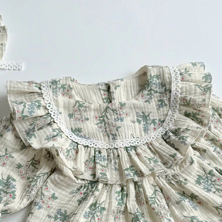 Set Body Tay Dài Hoa Tiết Hoa Nhí Cổ Yếm Cho Bé Gái Sơ Sinh 1 2 Tuổi Từ 3-11kg Dành Cho Bé Gái