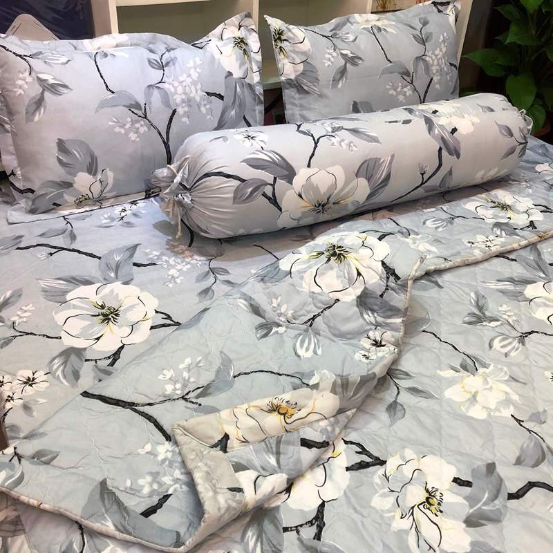 Giới thiệu Sét Chăn Ga Gối 5 Món Cotton Poly Mẫu Hoa Ghi