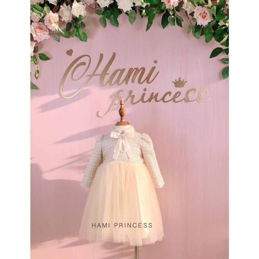 Set Dạ Tweed Liền Thân Màu Kem Sang Chảnh Cho Bé Gái HAMI PRINCESS ❤️ Tặng Kèm Nơ Cài