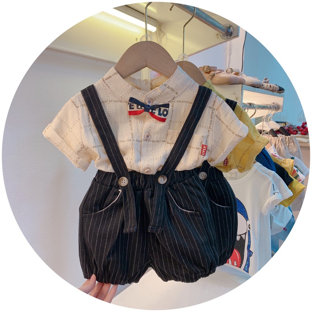 Set quần và áo sơ mi cho bé trai, hàng Quảng Châu, kiểu dáng công tử, có kèm nơ.
