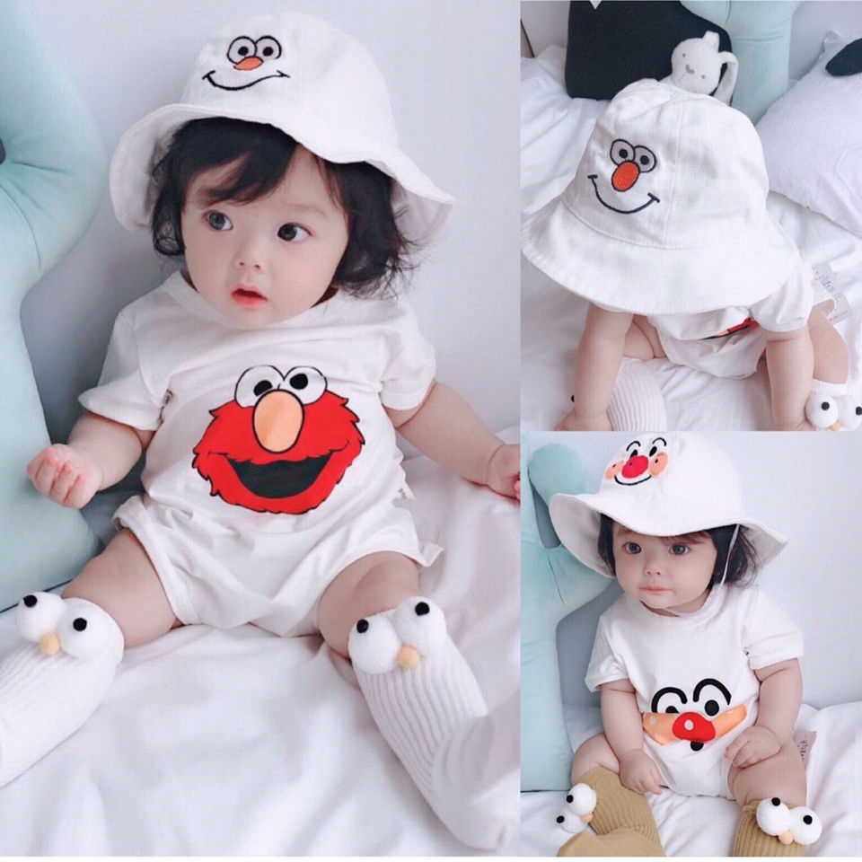 Giới thiệu Set Jumpsuit Tay Ngắn Hoạ Tiết Hoạt Hình + Mũ Cho Trẻ Sơ Sinh