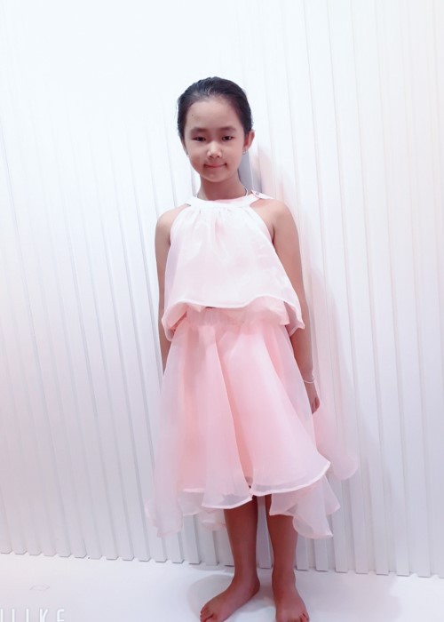 Set đồ đi tiệc rất thời trang và lạ mắt cho bé gái, sự kết hợp của áo crop top với chân váy mullet được may từ chất liệu voan cưới cao cấp tạo nên một bộ cánh bồng bềnh đẹp tuyệt cho bé gái nổi bật trong bữa tiệc.