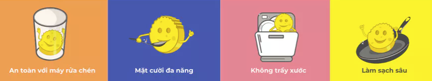 - Thiết kế tròn kết hợp cùng đôi mắt giúp giữ chặt ngón tay để bạn dễ dàng di chuyển xuống đáy và cùng lúc làm sạch cả thành bên. Miệng cười giúp rửa sạch đồng thời cả 2 mặt của đồ dùng.