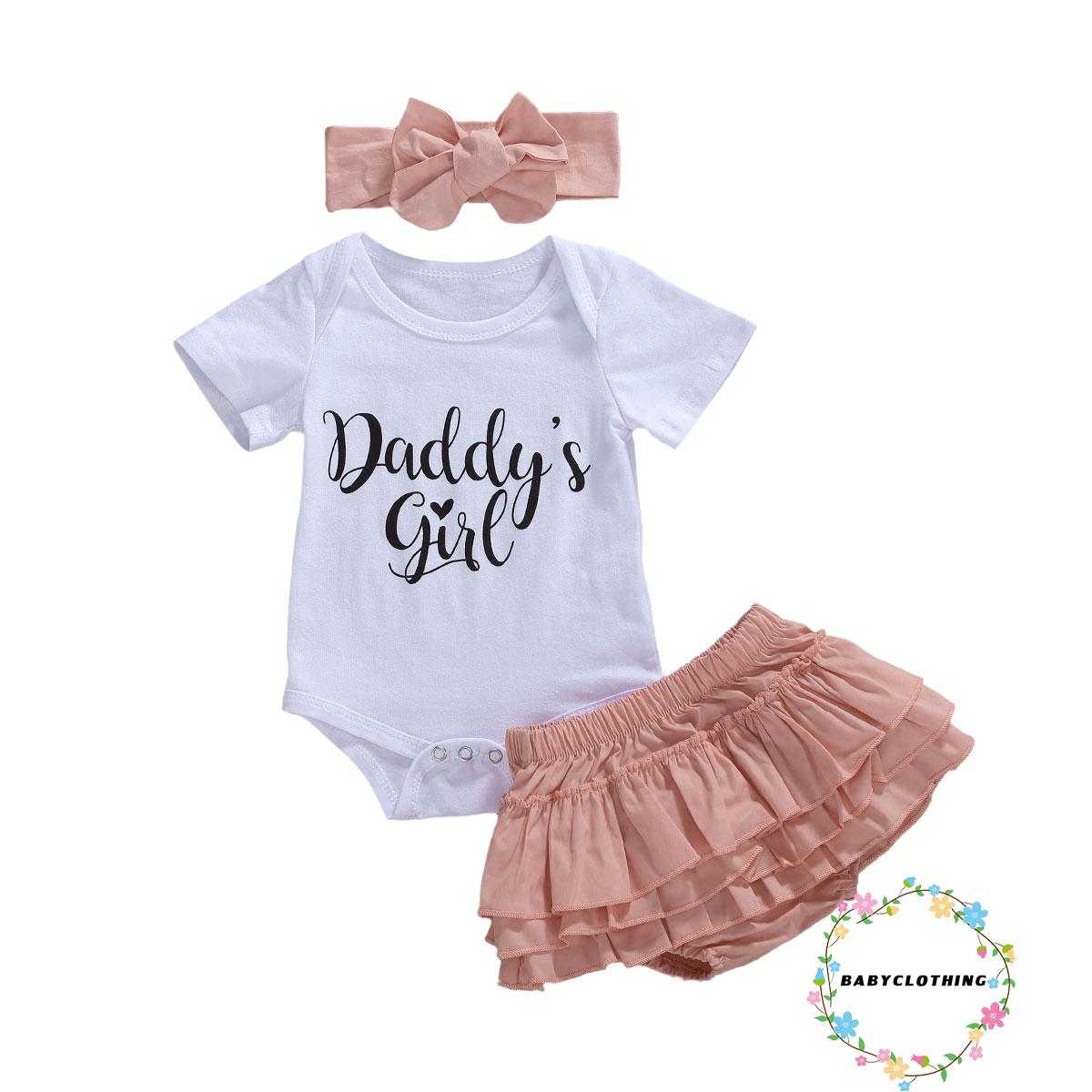 3Pcs Baby Summer Outfits Daddy’s Girl Letters Print Short Sleeves Romper + Ruffle Layered Pant-Skirt + Headband Great as Birthday or Children’s Day Present for Your Daughter!