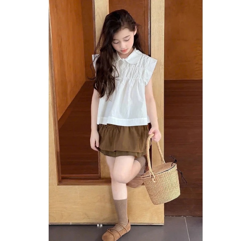 Set Váy Bé Gái, Bộ Bé Gái Áo Sơ Mi Kiểu Nhún Ngực Kèm Chân Váy 2 Tầng Từ 12-45KG Dành Cho Bé Gái