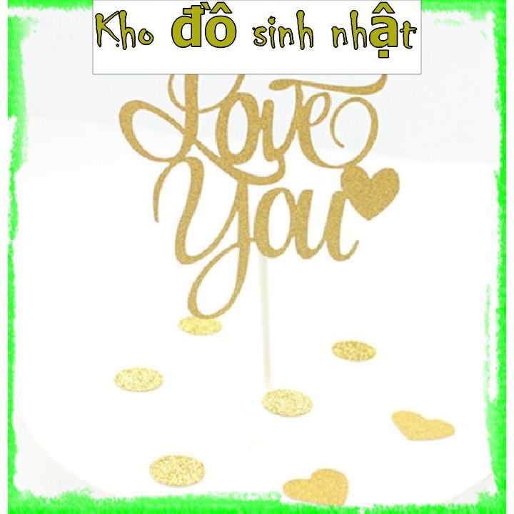 Sỉ 10 topper giấy nhũ chữ Love You cắm bánh sinh nhật, giấy nhũ trang trí