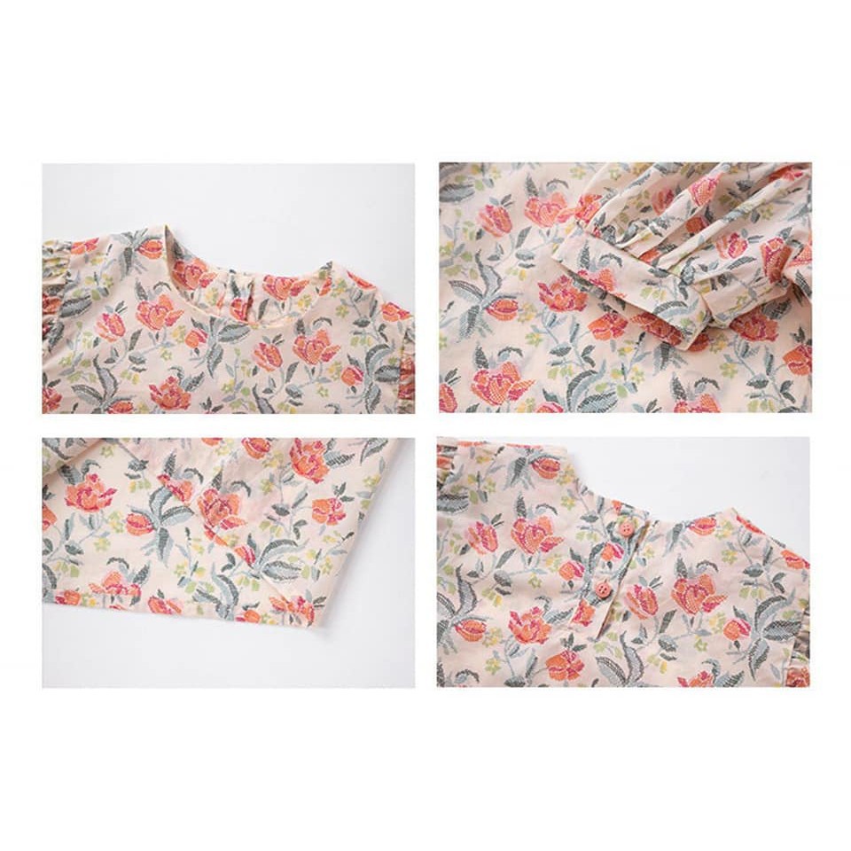 Giới thiệu Áo bé gái sơ mi chất voan lụa tay bồng họa tiết hoa hồng mềm đẹp cao cấp