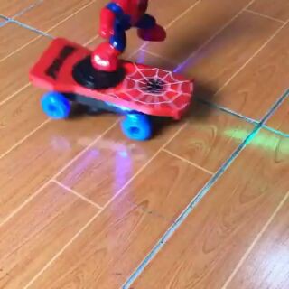 👉 Dùng pin, có đèn nhạc, ván trượt quay 360°, người nhện quay quanh trục ván trượt