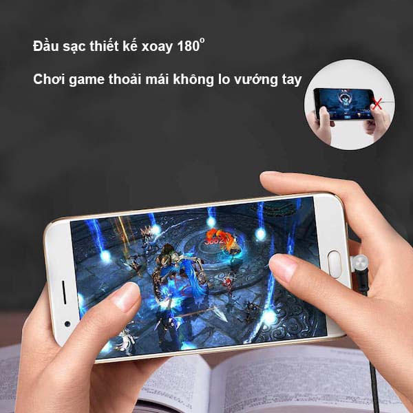 Với sạc thông minh 180 độ bạn không cần dùng 2 tay khi cắm sạc. Chỉ cần đưa nhẹ đầu dây sạc vào đầu sạc là nam châm hút tự động sạc. Do dây xoay 360 độ nên bạn không quan tâm mặt trên dưới cứ đưa vào là sạc được. Giảm đáng kể thiệt hại do số lần cắm và rút chân sạc điện thoại bảo vệ lỗ sạc điện thoại không bị chai mòn. Thuận tiện khi sử dụng, thoải mái với mọi tác vụ hằng ngày.