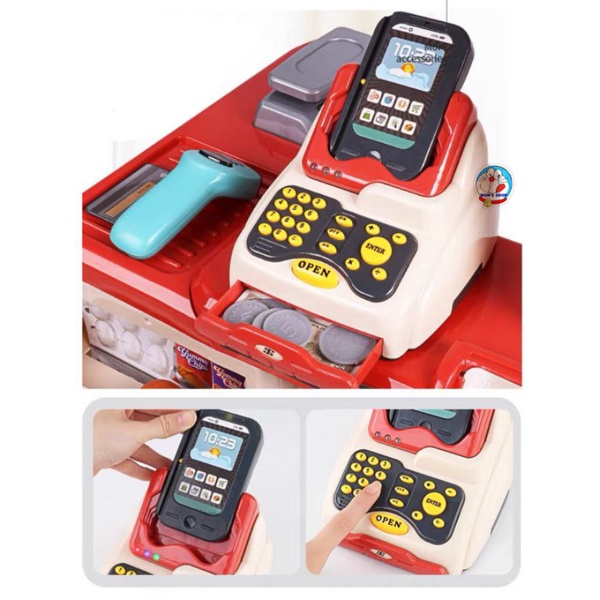QUẦY SIÊU THỊ MINI KÈM XE ĐẨY 💎💎💎Đồ chơi siêu thị là món đồ chơi ưa thích của trẻ, món đồ chơi mô phỏng một hoạt động thường ngày trong cuộc sống là hoạt động mua sắm ở siêu thị. 💎💎💎 Trẻ sẽ hoà nhập vào không gian của một siêu thị thu nhỏ, với quầy hàng siêu thị gồm 48 chi tiết: các loại hàng hoá được phân loại, sắp xếp ngăn nắp trên quầy hàng vô cùng bắt mắt. 💎💎💎 Bộ đồ chơi gồm quầy hàng siêu thị và xe đẩy siêu thị, trò chơi có thể tổ chức gồm 2 trẻ trở lên tham gia chơi cùng nhau. 💎💎💎 Bộ đồ chơi dùng pin, có máy quẹt thẻ thanh toán và máy quét mã vạch lắp pin sẽ phát ra ánh sáng và âm thanh mô phỏng y như thật. Đặc điểm nổi bật là chiếc máy tính tiền với các phím bấm số phát ra âm thanh giúp trẻ làm quen với các con số và phép toán cơ bản, máy tính tiền có két cất tiền mỗi khi thu tiền của khách hàng việc đóng mở chỉ bằng một nút bấm nhẹ. 💎💎💎 Lợi ích mà món đồ chơi mang lại cho trẻ là: phát triển trí tưởng tượng, khả năng giao tiếp, giúp trẻ tự tin, hoạt bát, mang đến cho trẻ khái niệm về tiền tệ, khả năng tính toán...