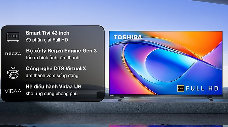 - Màn hình 43 inch Full HD hiển thị hình ảnh sắc nét, phù hợp không gian vừa và nhỏ.