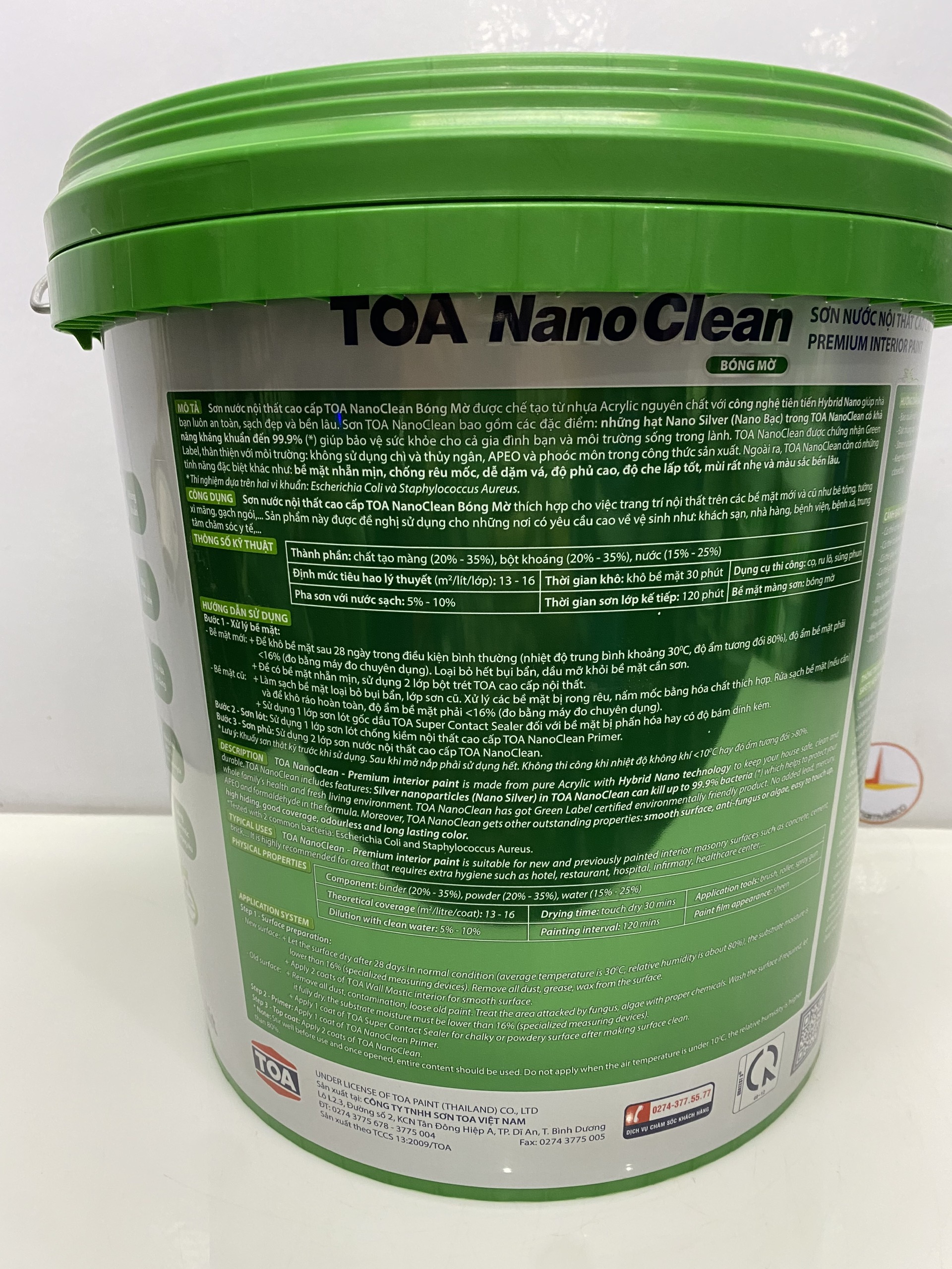 - TOA NanoClean được chứng nhận là sản phẩm xanh, thân thiện với môi trường, không sử dụng chì, APEO và phoóc-môn trong công thức sản xuất.