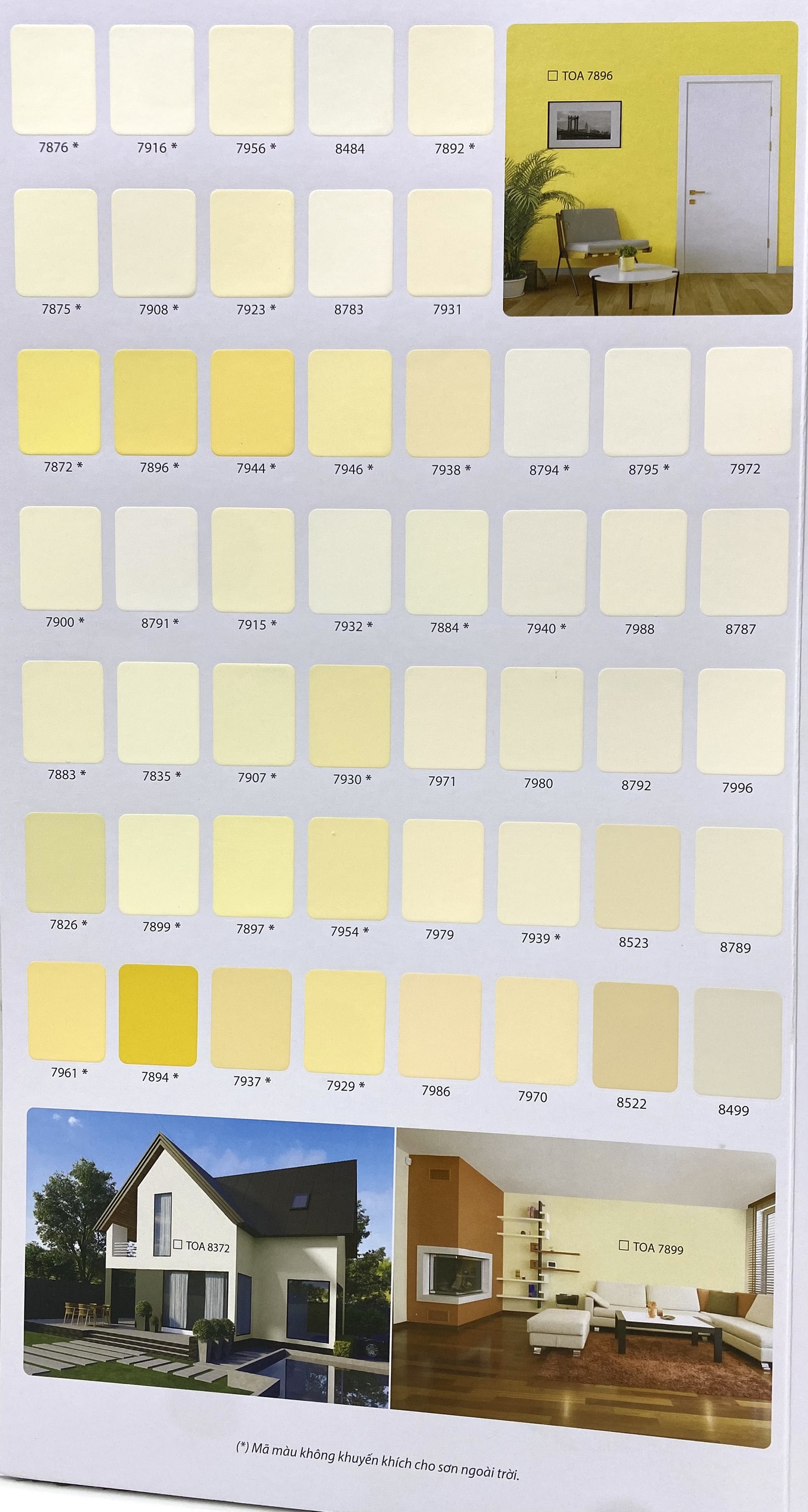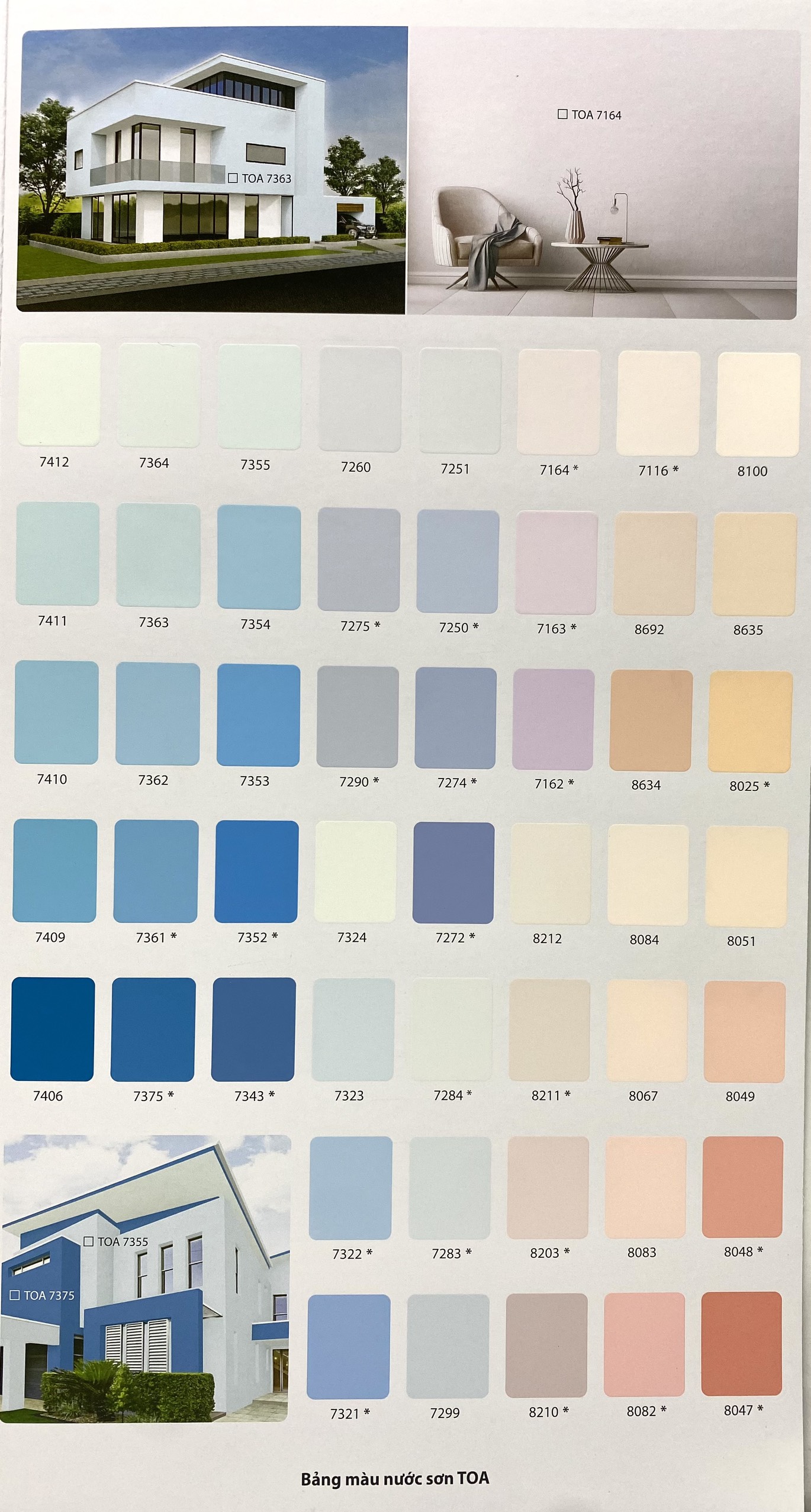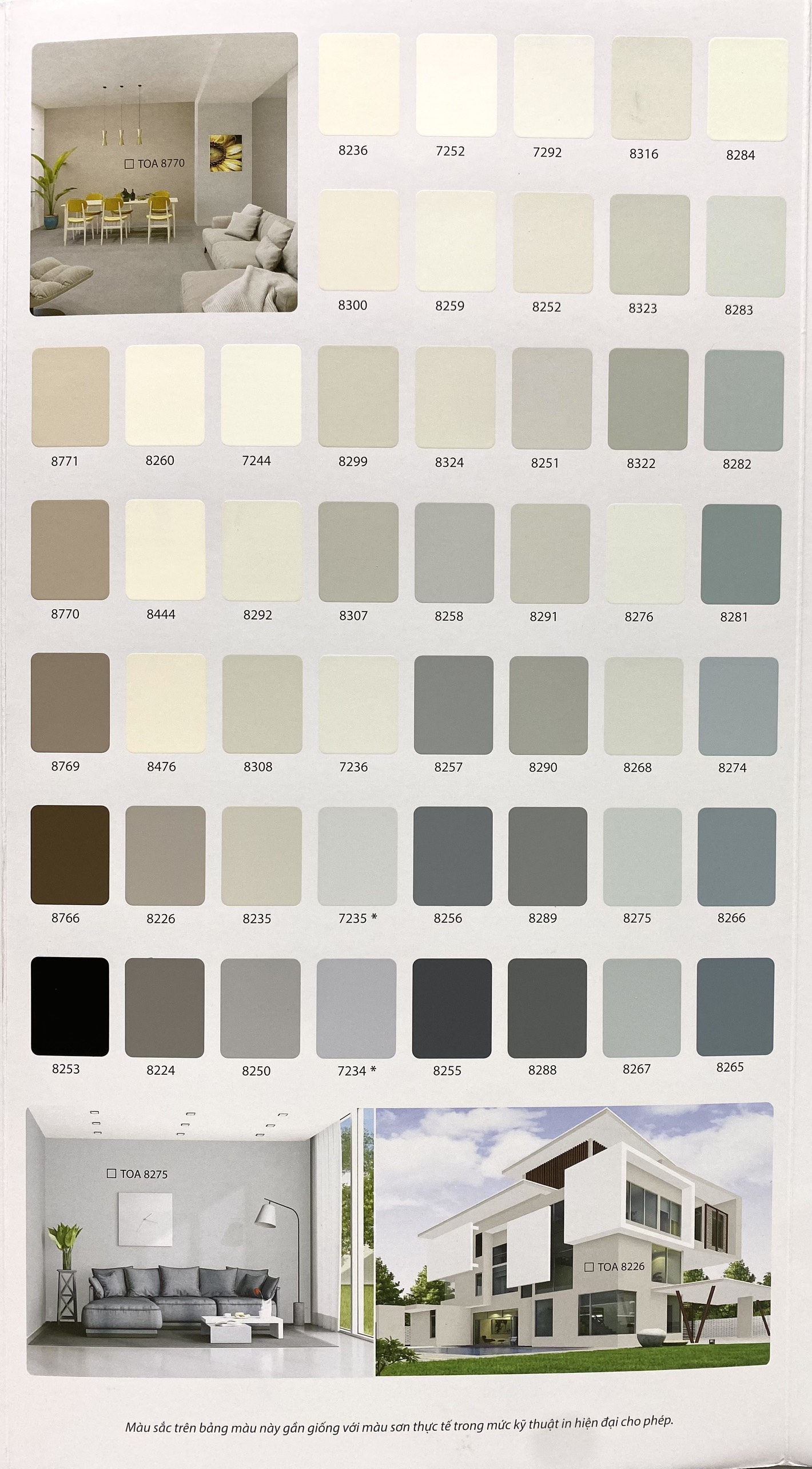 - Màu sắc:Theo bảng màu và quạt màu TOA Color World