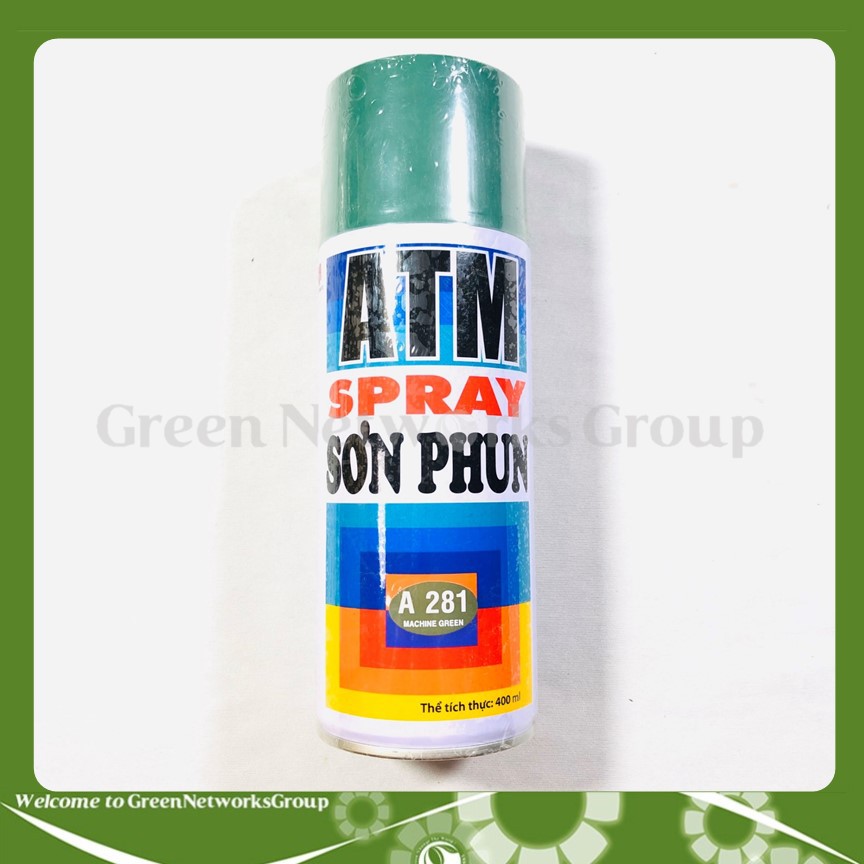 Sơn phun xịt ATM màu xanh machine A281 Greennetworks Sơn xịt xe máy ATM màu xanh machine đặc chế từ hỗn hợp nhựa N/C và ACRYLIC, được đóng gói dưới dạng bình xịt cầm tay rất tiện dụng, dùng sơn để trang trí cho các bề mặt bằng gỗ và kim loại như: đồ gia dụng, bàn, ghế, đồ chơi trẻ em, xe đạp, xe máy,... Đây là loại sơn mau khô, chất lượng tuyệt hảo với màu sắc tươi, bền và bóng đẹp đến không ngờ!