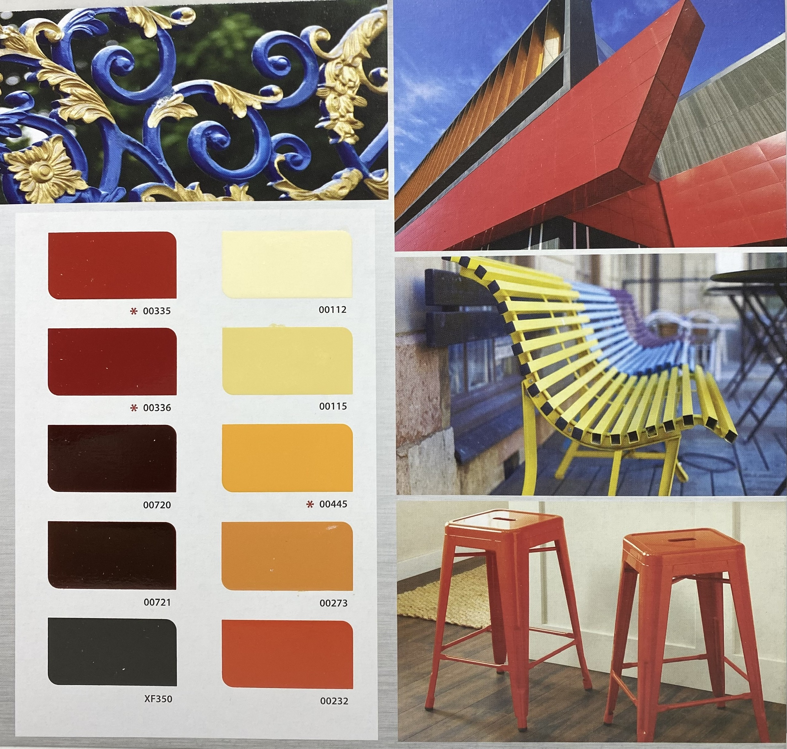Màu sắc: trắng 111, xanh 620, xanh 601, xanh 631, xanh 618, xanh lá 614, xám 125, 120, xanh 642, xanh 671, bạc 000, xám 192, trắng mờ 222, xám xingfa XF911, XF910, XF350, xám 189, xám 191, đen 999, đen mờ 888, đỏ 335, đỏ 336, đỏ nâu 720, cánh dán 721, kem 112, kem 115, vàng 445, 273 cam 232.