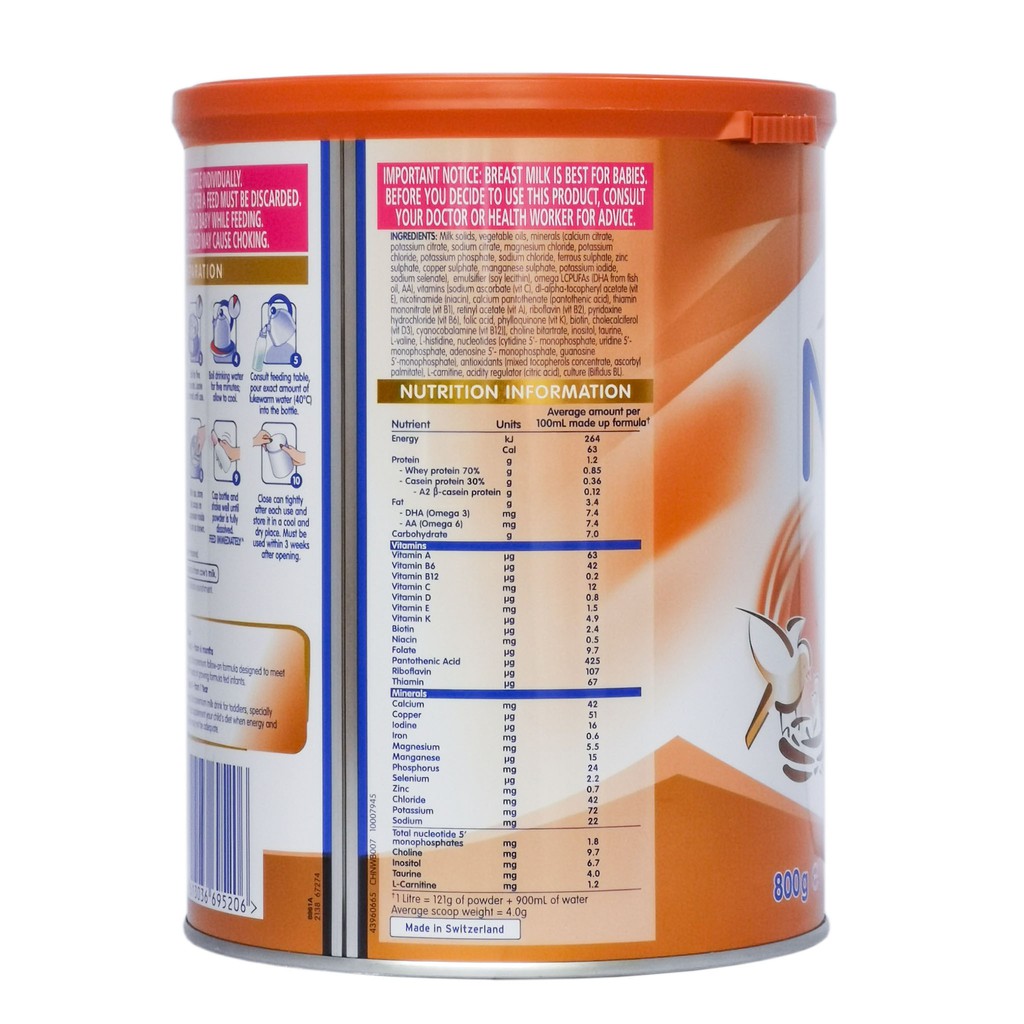 ĐẶC ĐIỂM NỔI BẬT - Là kết hợp đặc biệt giữa đạm whey và casein, trong đó protein A2 β - casein được chế biến từ sữa của những con bò đặc biệt, được chọn lọc để chứa độc quyền protein A2 β-casein. - Chứa đầy đủ các vitamin, khoáng chất, DHA cho sự phát triển toàn diện của trẻ. - Chứa Nucleotide tốt cho hệ tiêu hóa, cải thiện chức năng của ruột, gan, ngăn ngừa ung thư, đặc biệt đối với trẻ em. - DHA và ARA: hỗn hợp axit béo quan trọng và cần thiết cho hoạt động và chức năng của não bộ, mắt, giúp trẻ phát triên trí tuệ và tăng cường thị lực tốt. - Canxi và vitamin D: là 2 loại dưỡng chất thiết yếu đối với sự chắc khỏe của xương và răng. - Giúp bé tăng cân khỏe mạnh với công thức, thành phần cân bằng, hàm lượng hợp lí. - Tăng cường hệ miễn dịch, nâng cao sức đề kháng. - Vị sữa vừa thơm mát và ngọt nhạt như sữa mẹ nên kích thích vị giác và hợp với khẩu vị của các bé.