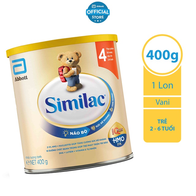 Sữa Similac HMO số 4 hộp 900g cho trẻ từ 2 đến 6 tuổi, trong giai đoạn này trẻ nhỏ vẫn còn dễ mắc nhiều loại bệnh về tiêu hóa và hô hấp do sức đề kháng của trẻ vẫn đang trong quá trình hoàn thiện như người lớn. Do vậy cơ thể của trẻ cần được tăng cường miễn dịch để trẻ luôn khỏe mạnh và tự tin thoải mái vận động, khám phá thế giới bên ngoài giúp phát huy tối đa tiềm năng của trẻ. FL HMO là viết tắt của 2’-fucosyllactose Human Milk Oligosaccharides, là một loại HMO phổ biến nhất chiếm khoảng 30% tổng số HMO hơn 100 loại có trong sữa mẹ, HMO giúp trẻ tăng cường hệ miễn dịch và hỗ trợ hệ tiêu hoá khoẻ mạnh. Các nhà khoa học Dinh dưỡng Abbott đã trải qua hơn15 năm nghiên cứu về HMO và đã thành công bổ sung HMO trong sữa bột công thức Similac IQ. Từ các nghiên cứu cứu lâm sàng cho thấy trẻ sử dụng sữa công thức Similac IQ 2'-FL HMO giảm 66% nhiễm trùng đường hô hấp, giảm 36% các triệu chứng đau quặn bụng so với sữa công thức không bổ sung HMO.