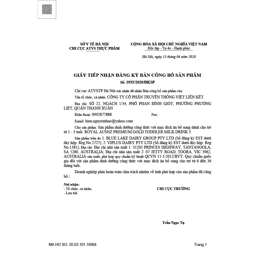 - Sản xuất bởi Royal AUSNZ - Thương hiệu sữa danh tiếng tại Úc với lịch sử 160 năm