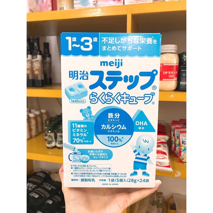 - Sữa Meiji thanh có 2 loại: số 0 và số 1-3 được đóng gói theo quy cách 27g x 24 thanh – mỗi thanh có 5 viên dạng thanh, bao gồm: + Sữa Meiji thanh số 0 dành cho trẻ từ 0 - 1 tuổi. + Sữa Meiji thanh số 1-3 dành cho trẻ từ 1 - 3 tuổi.