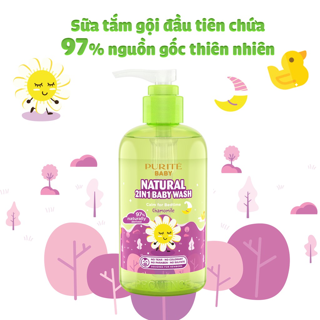 Giới thiệu [Mã FMCGMALL -8% đơn 250K] Sữa Tắm Gội Purité Baby Natural 2in1 Cúc La Mã 250ml