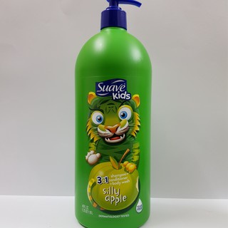 – Suave Kids Shampoo + Conditioner + Body Wash với mùi hương tự nhiên và những hình ảnh vui nhộn bên ngoài làm bé thích thú hơn khi tắm. Sản phẩm được các bác sĩ tại Mỹ kiểm nghiệm là dịu nhẹ cho mắt, không cay mắt bé và dễ dàng rửa sạch khi Suave Kids lọt vào mắt bé.