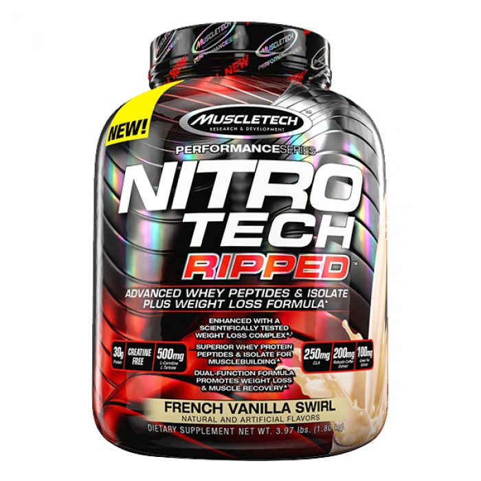 NITRO-TECH RIPPED là sản phẩm cải tiến mới nhất của Muscle Tech. Công thức cải tiến này kết hợp giữa 2 loại whey protein peptides và whey protein cô lập với thành phần có công dụng giảm cân đã được kiểm nghiệm khoa học. Công thức 7 trong 1 này còn chứa CLA, MCTs, L-carnitine L-tartrate, chiết xuất trà xanh, chiết xuất cây tầm xuân và bột rong biển. Hãng Muscle tech đã thiết kế công thức protein siêu tinh khiết kết hợp với hiệu quả giảm cân đặc biệt này-một công thức không giống bất kỳ công thức nào trước đây. NITRO-TECH RIPPED cung cấp 30g hỗn hợp whey peptides và whey cô lập để có lợi cho sự tiêu hoá, dễ pha và chứa hàm lượng cao các amino axit thiết yếu (BCAAs).