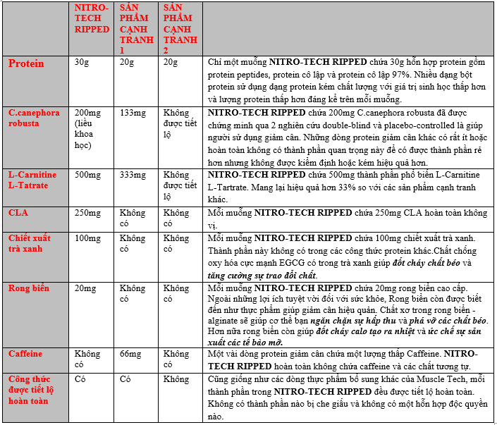 So sánh Nitro tech Ripped với các sản phẩm cùng loại: