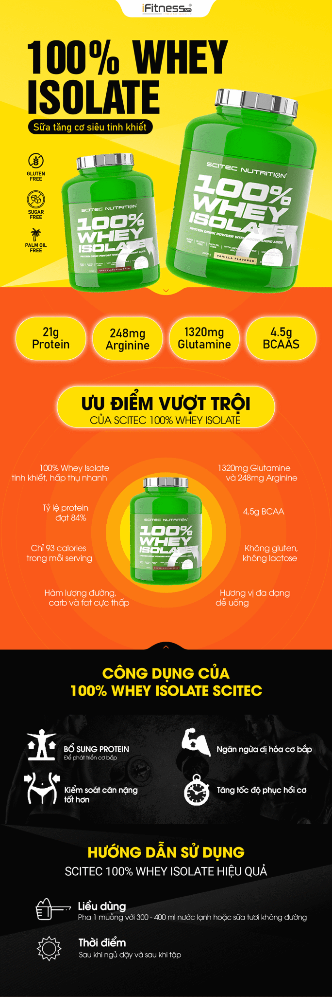 Scitec Nutrition 100% Whey Isolate – Sữa Tăng Cơ Siêu Tinh Khiết Từ Châu Âu