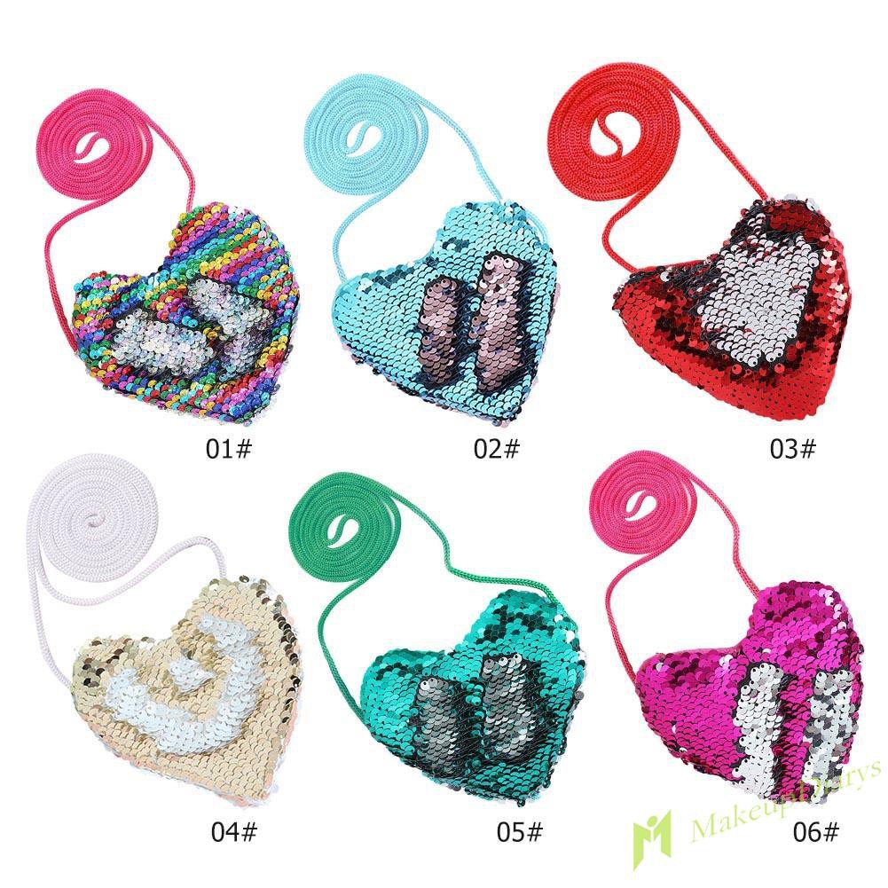 Sweet Baby Love Heart Shoulder Messenger Handbags Kids Girls Sequins Casual Satchel Glitter Crossbody Bags Features: Sequins material, durable. Love heart design, sweet and stylish.