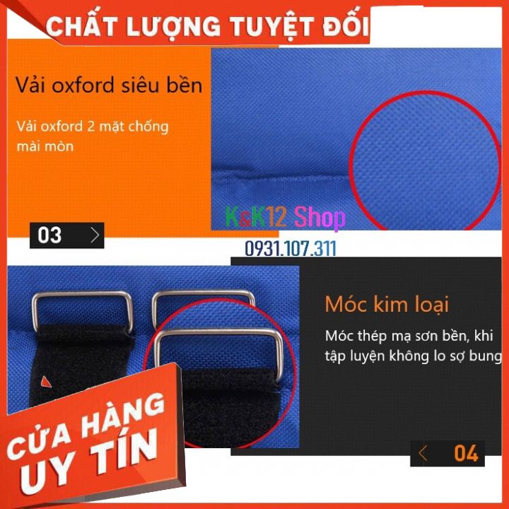 🔴 K&K12 Shop --- Cam kết sản phẩm giống như video và hình ảnh mô tả, quý khách hoàn toàn yên tâm khi mua và sử dụng sản phẩm. * Thời gian ship chỉ từ 2-5 ngày. Nội thành SG 2 ngày. ------------------------------------------------------------------- ➊ GIỚI THIỆU SẢN PHẨM * Tạ cát đeo tay, đeo chân tiện lợi giúp hỗ trợ tập luyện thể dục thể thao tại nhà. ------------------------------------------------------------------- ➋ CHI TIẾT SẢN PHẨM * Tên sản phẩm: Tạ cát đeo tay, đeo chân tiện lợi. * Chất liệu: Vải Oxford cao cấp chống ẩm, chống bụi. Móc kim loại. Cát sắt + cát sông bên trong ruột. * Trọng lượng : 1kg(2*0.5kg)/ 2kg(2*1kg)/ 3kg(2*1.5kg) * Màu sắc : Màu xanh blue ------------------------------------------------------------------- ➌ TÍNH NĂNG CỦA SẢN PHẨM : - Tạ cát đeo tay, đeo chân tiện lợi được làm từ vải hút mồ hôi tốt, không làm khó chịu tay, chân. Tạ đã được may chắc chắn, không thể bung hay rớt trong quá trình tập. - Sử dụng tạ cát hỗ trợ điều trị trong quá trình vật lý trị liệu chân, mắt cá chân,... Đối với nữ: giảm cân nhanh chóng, đốt cháy nhiều calo hơn, vòng 2 săn chắc, vòng 3 nở nang. - Khi chạy bộ, đi bộ, khi tập gym, tạ cát sẽ giúp chân tăng cường hoạt động hơn, từ đó đôi chân bạn sẽ khỏe mạnh và nhiều lực hơn. ------------------------------------------------------------------- 🔴 CHÍNH SÁCH - QUYỀN LỢI CỦA KHÁCH : * Nếu nhận hàng sai, bị lỗi sản xuất, bạn vui lòng nhắn tin trực tiếp đến K&K12 Shop, K&K12 Shop sẽ đổi hàng mới cho bạn. * Nếu khách hàng muốn trả sản phẩm, nhận lại tiền. K&K12 Shop sẵn sàng đổi trả, hoàn tiền cho khách hàng theo đúng quy định Shopee (Trong thời hạn 7 ngày kể từ ngày quý khách nhận hàng, sản phẩm phải chưa sử dụng, còn nguyên vẹn đầy đủ) * Trường hợp chấp nhận đổi trả miễn phí : thiếu hàng, sản phẩm không đúng mô tả, sản phẩm lỗi * Chúng tôi cam kết: - Sản phẩm giống như hình ảnh minh họa - Chuyển hàng toàn quốc, thanh toán khi nhận hàng. 📱Hotline 0931107311 ✪ Xin chân thành cám ơn quý khách đã tin tưởng và ủng hộ K&K12Shop !
