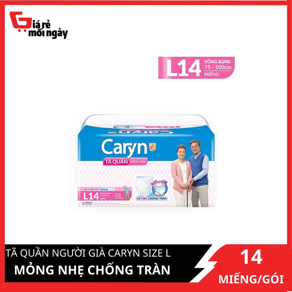 Tã Quần Người Lớn Caryn Mỏng Nhẹ Chống Tràn Size L -14 Miếng Dành Cho Người Già Có Thể Tự Đi Lại Được